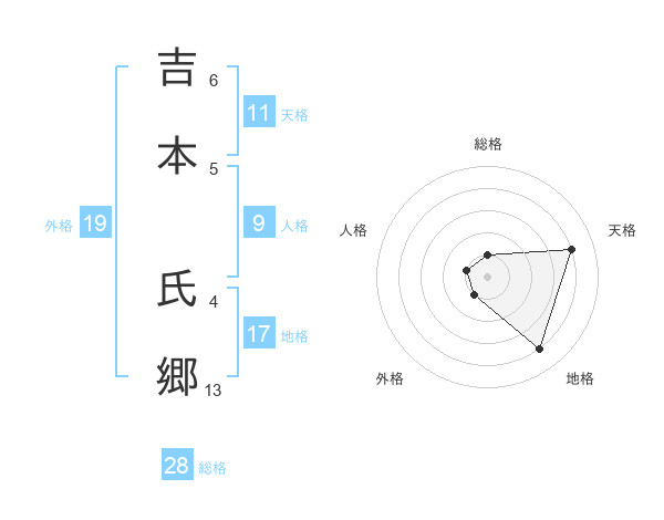 吉本 氏郷さんを姓名の画数から五運を鑑定