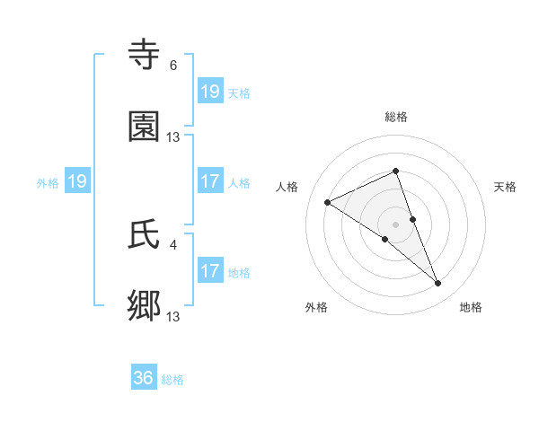 寺園 氏郷さんを姓名の画数から五運を鑑定