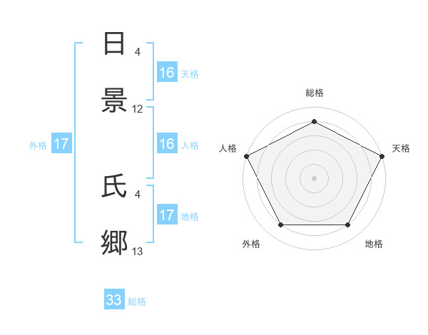 日景 氏郷さんを姓名の画数から五運を鑑定