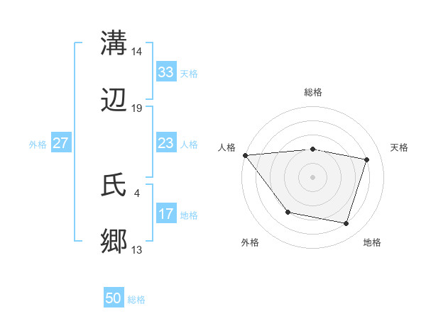 溝辺 氏郷さんの総格は50画の2点!