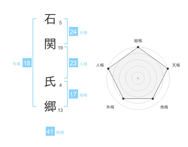 石関 氏郷さんを姓名の画数から五運を鑑定
