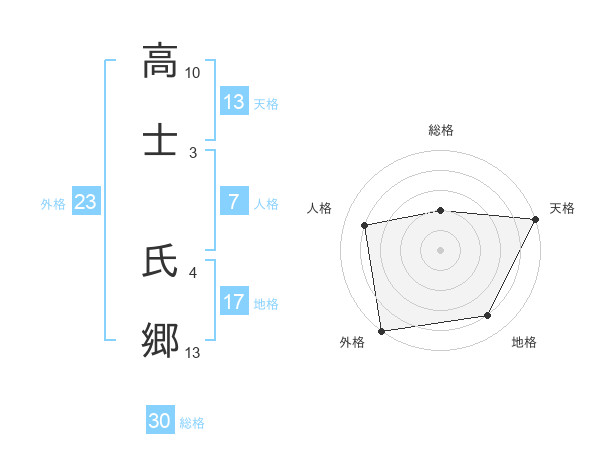 高士 氏郷さんの総格は30画の2点!