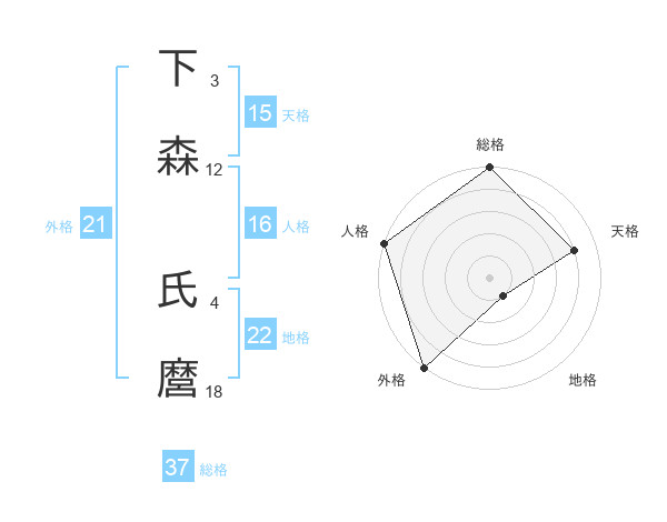 下森 氏麿さんを姓名の画数から五運を鑑定