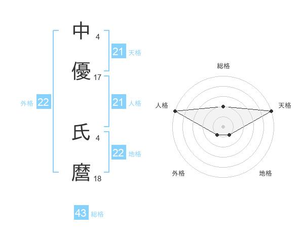 中優 氏麿さんを姓名の画数から五運を鑑定