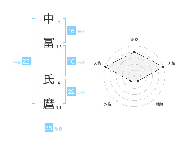 中冨 氏麿さんの総格は38画の4点!