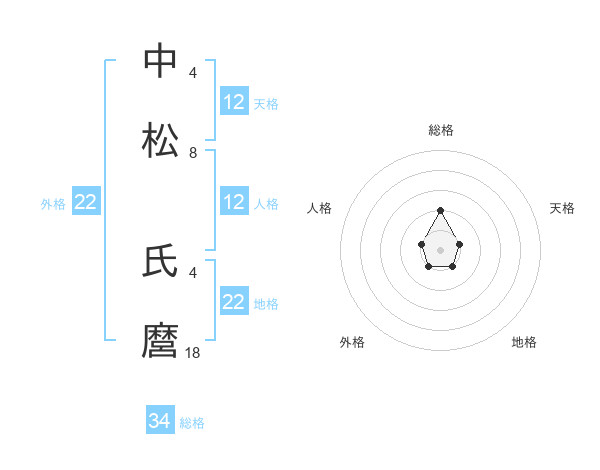 中松 氏麿さんの天格は12画の1点!
