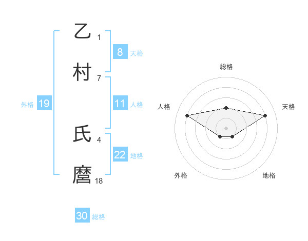 乙村 氏麿さんを姓名の画数から五運を鑑定