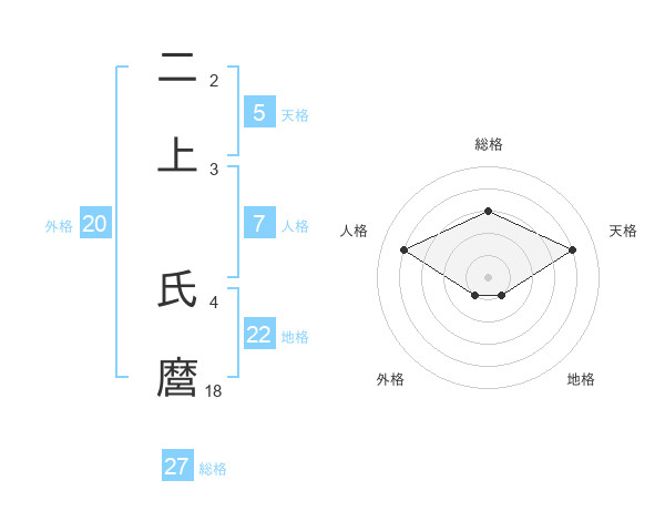 二上 氏麿さんを姓名の画数から五運を鑑定