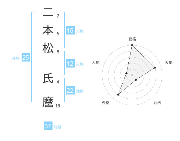 二本松 氏麿さんを姓名の画数から五運を鑑定