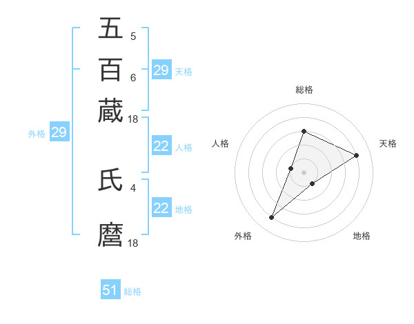 五百蔵 氏麿さんを姓名の画数から五運を鑑定