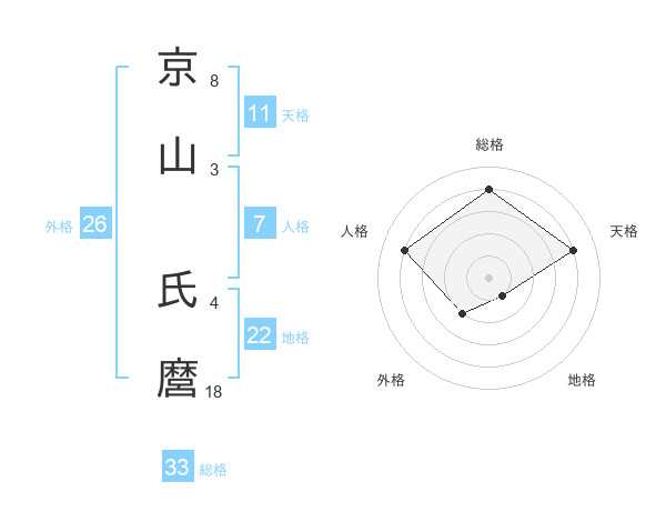 京山 氏麿さんの総格は33画の4点!
