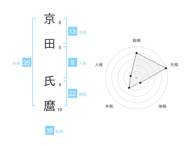 京田 氏麿さんの天格は13画の5点!