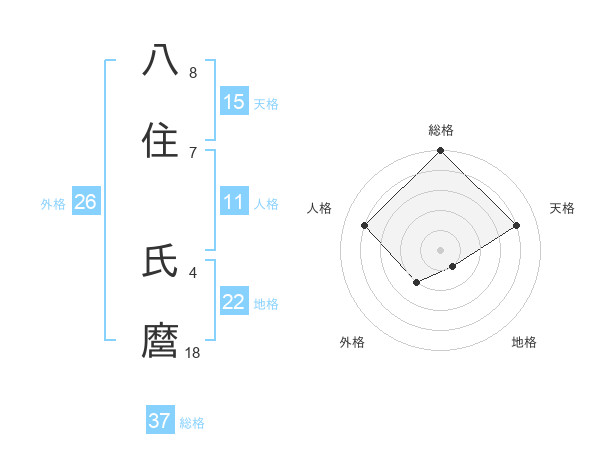 八住 氏麿さんの総格は37画の5点!