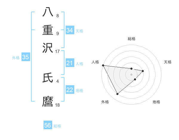 八重沢 氏麿さんの総格は56画の1点!