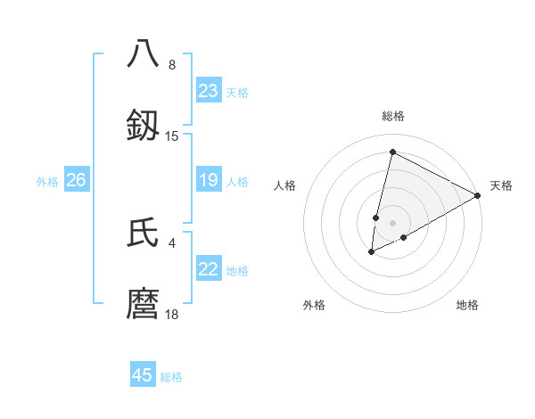 八釼 氏麿さんを姓名の画数から五運を鑑定