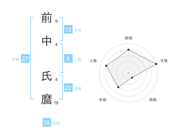 前中 氏麿さんを姓名の画数から五運を鑑定