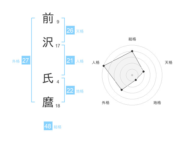 前沢 氏麿さんの総格は48画の4点!