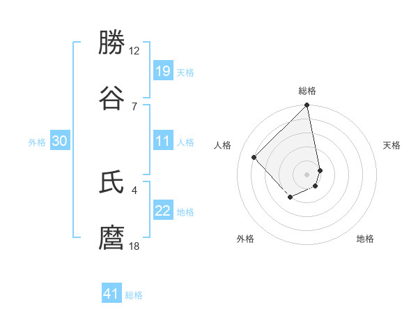 勝谷 氏麿さんの総格は41画の5点!