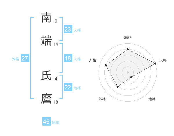 南端 氏麿さんの天格は23画の5点!