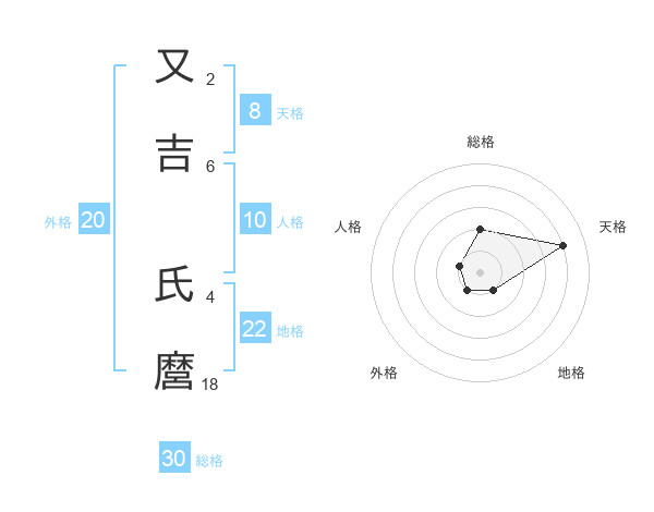 又吉 氏麿さんの天格は8画の4点!