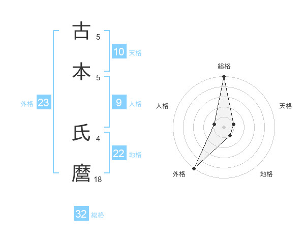 古本 氏麿さんを姓名の画数から五運を鑑定
