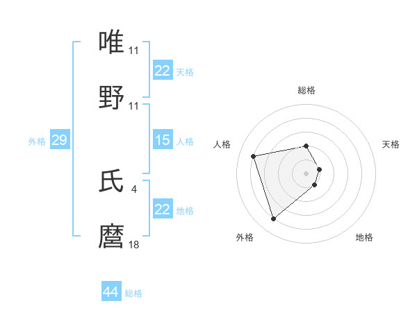 唯野 氏麿さんの天格は22画の1点!