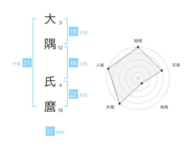 大隅 氏麿さんの地格は22画の1点!