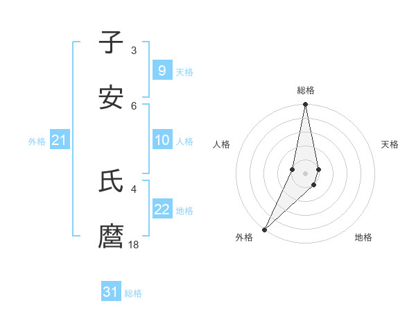 子安 氏麿さんの総格は31画の5点!