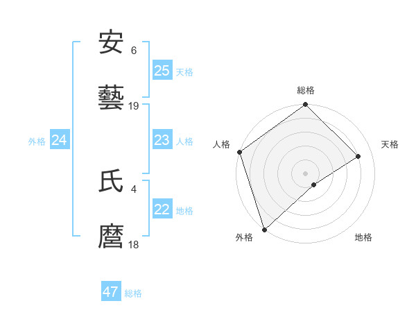 安藝 氏麿さんの総格は47画の5点!