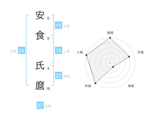 安食 氏麿さんの総格は37画の5点!