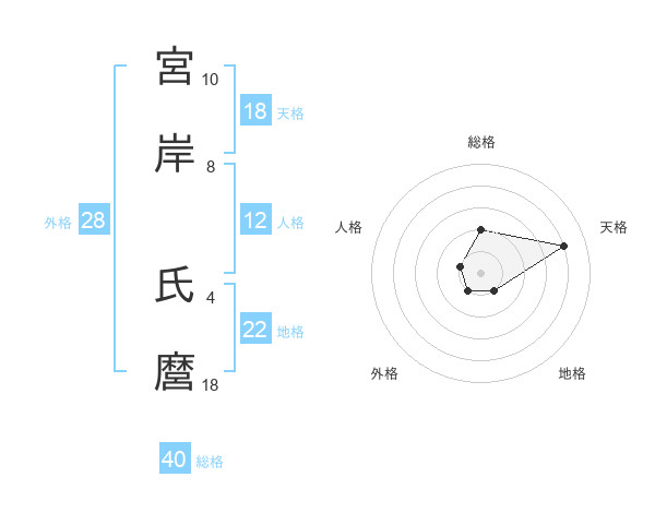 宮岸 氏麿さんの総格は40画の2点!