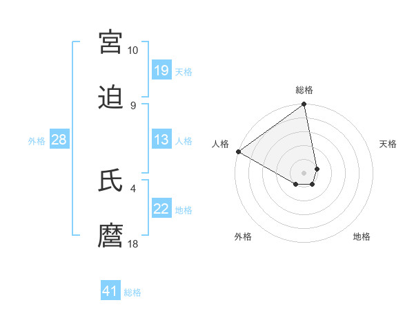 宮迫 氏麿さんを姓名の画数から五運を鑑定