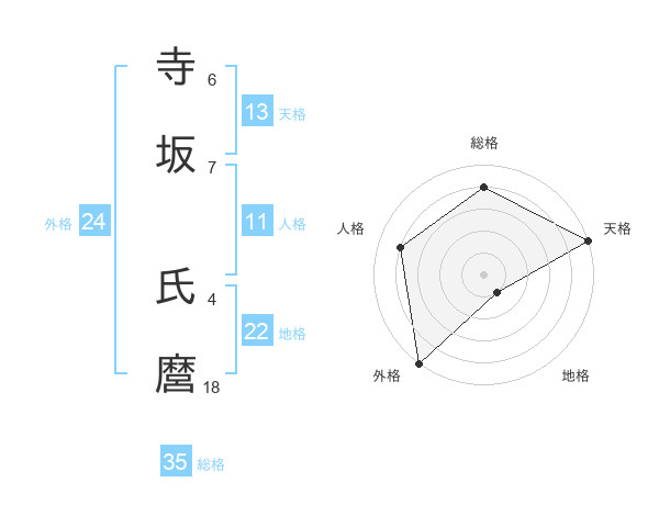 寺坂 氏麿さんの天格は13画の5点!