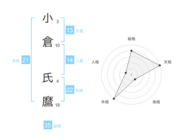 小倉 氏麿さんを姓名の画数から五運を鑑定