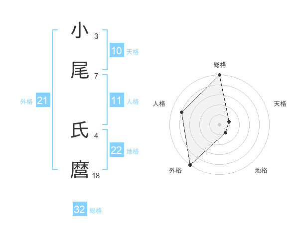 小尾 氏麿さんの総格は32画の5点!