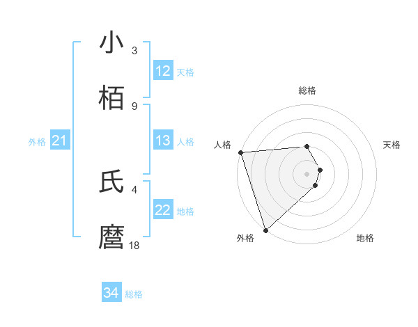 小栢 氏麿さんの総格は34画の2点!