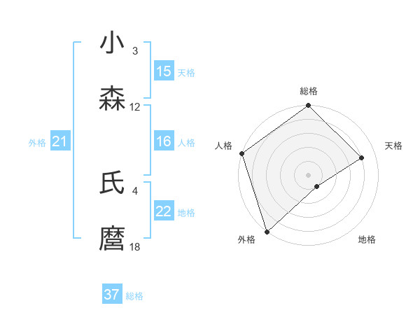 小森 氏麿さんの総格は37画の5点!
