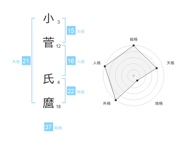 小菅 氏麿さんを姓名の画数から五運を鑑定
