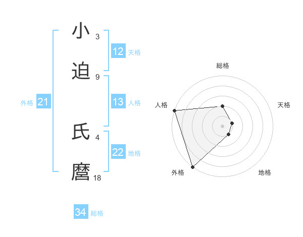 小迫 氏麿さんの外格は21画の5点!