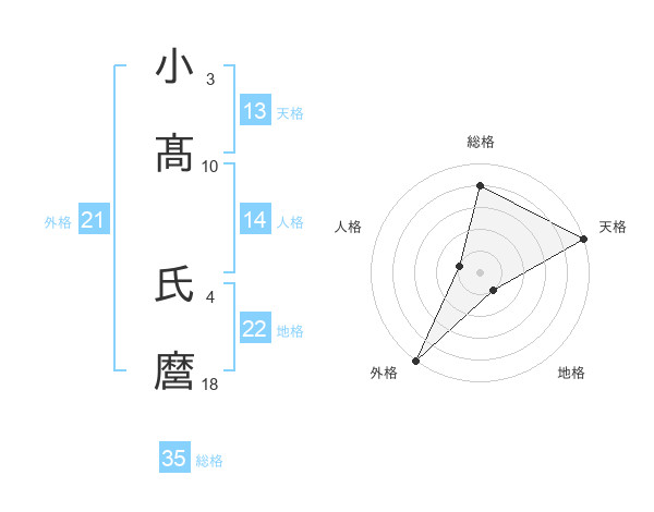 小髙 氏麿さんの外格は21画の5点!