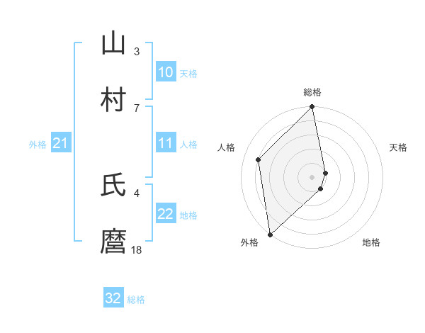 山村 氏麿さんの総格は32画の5点!