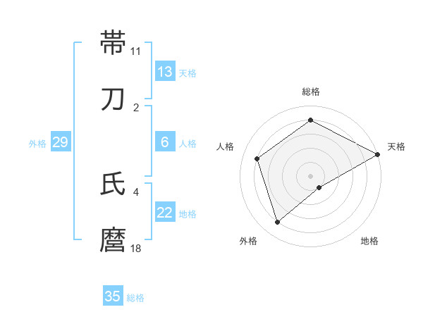 帯刀 氏麿さんを姓名の画数から五運を鑑定