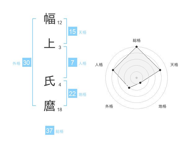 幅上 氏麿さんの総格は37画の5点!