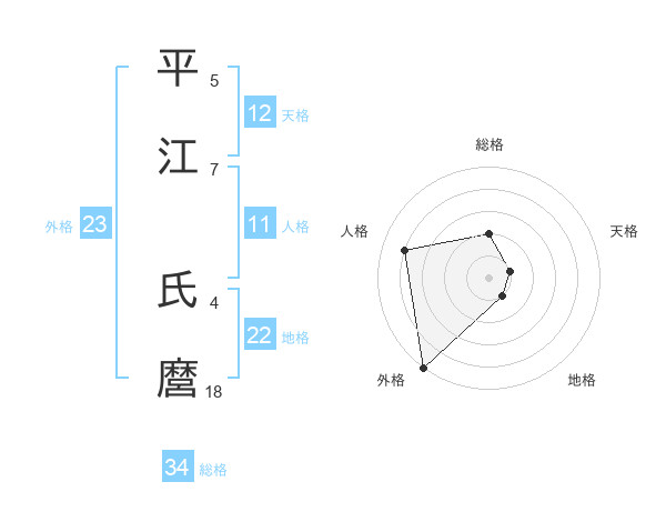 平江 氏麿さんの外格は23画の5点!