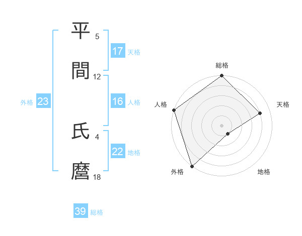平間 氏麿さんを姓名の画数から五運を鑑定