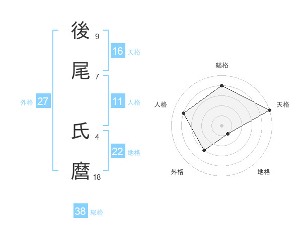 後尾 氏麿さんの総格は38画の4点!