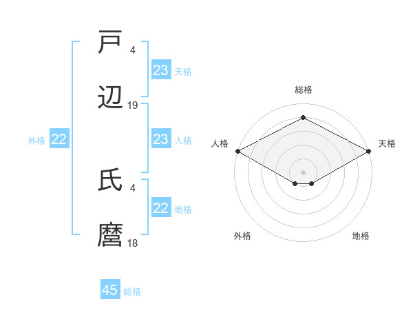 戸辺 氏麿さんの総格は45画の4点!