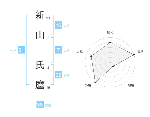 新山 氏麿さんの総格は38画の4点!