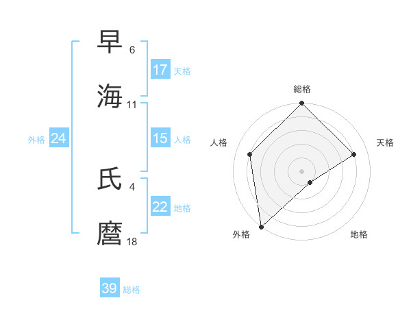 早海 氏麿さんの天格は17画の4点!