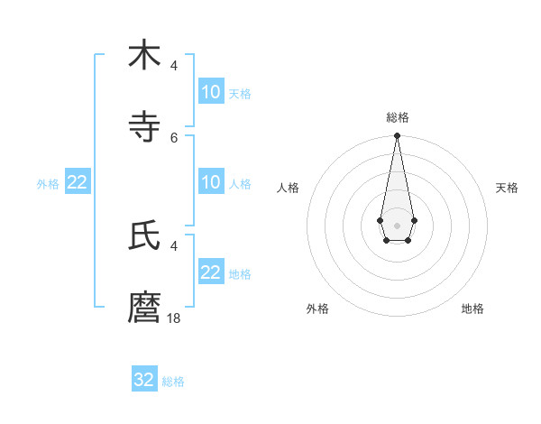 木寺 氏麿さんの総格は32画の5点!